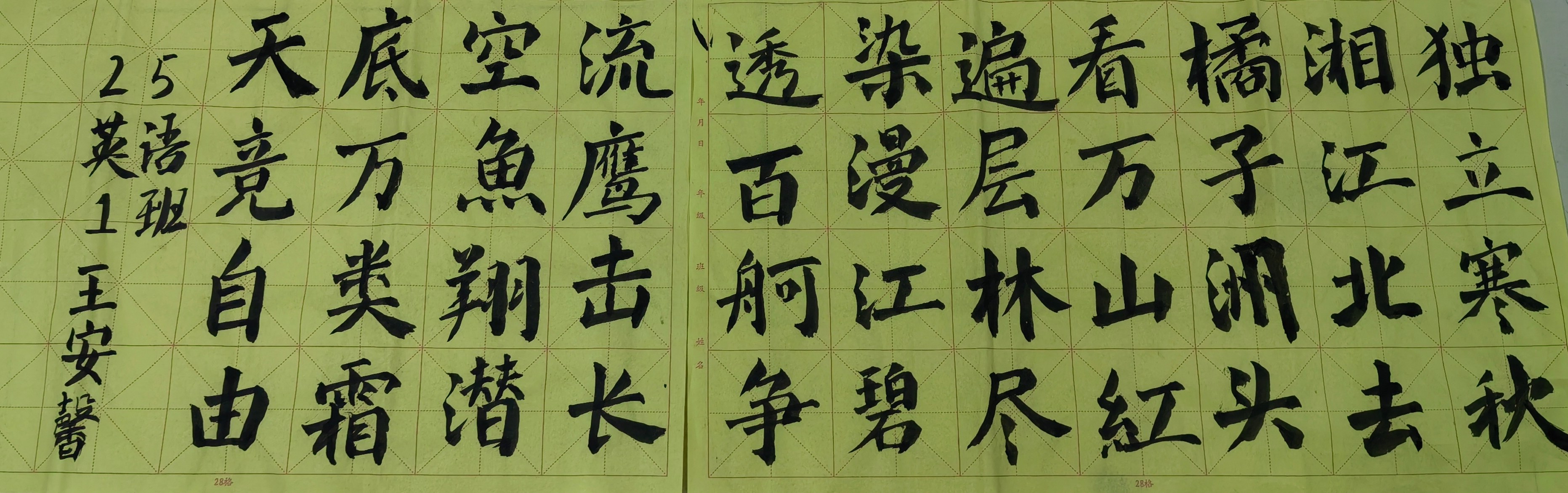 本次活动精心划分了软笔和硬笔两大区域,旨在为拥有不同书写习惯的同学们搭建展示平台。同学们紧扣主题,自由挥洒创意,笔端流淌出毛泽东、周恩来等伟人的豪迈诗词,亦不乏“中国梦”、“科技强国”等饱含时代精神的词句。