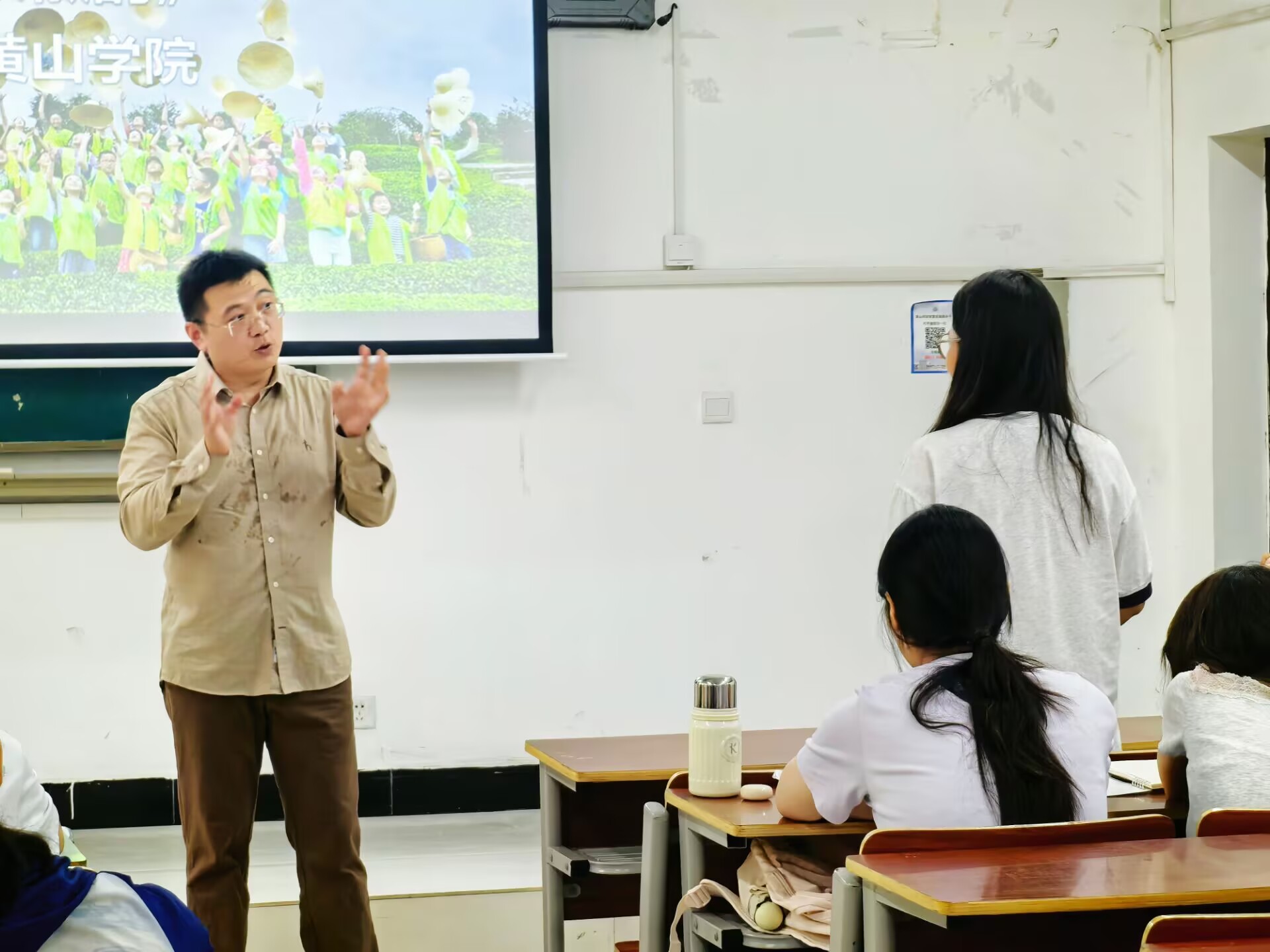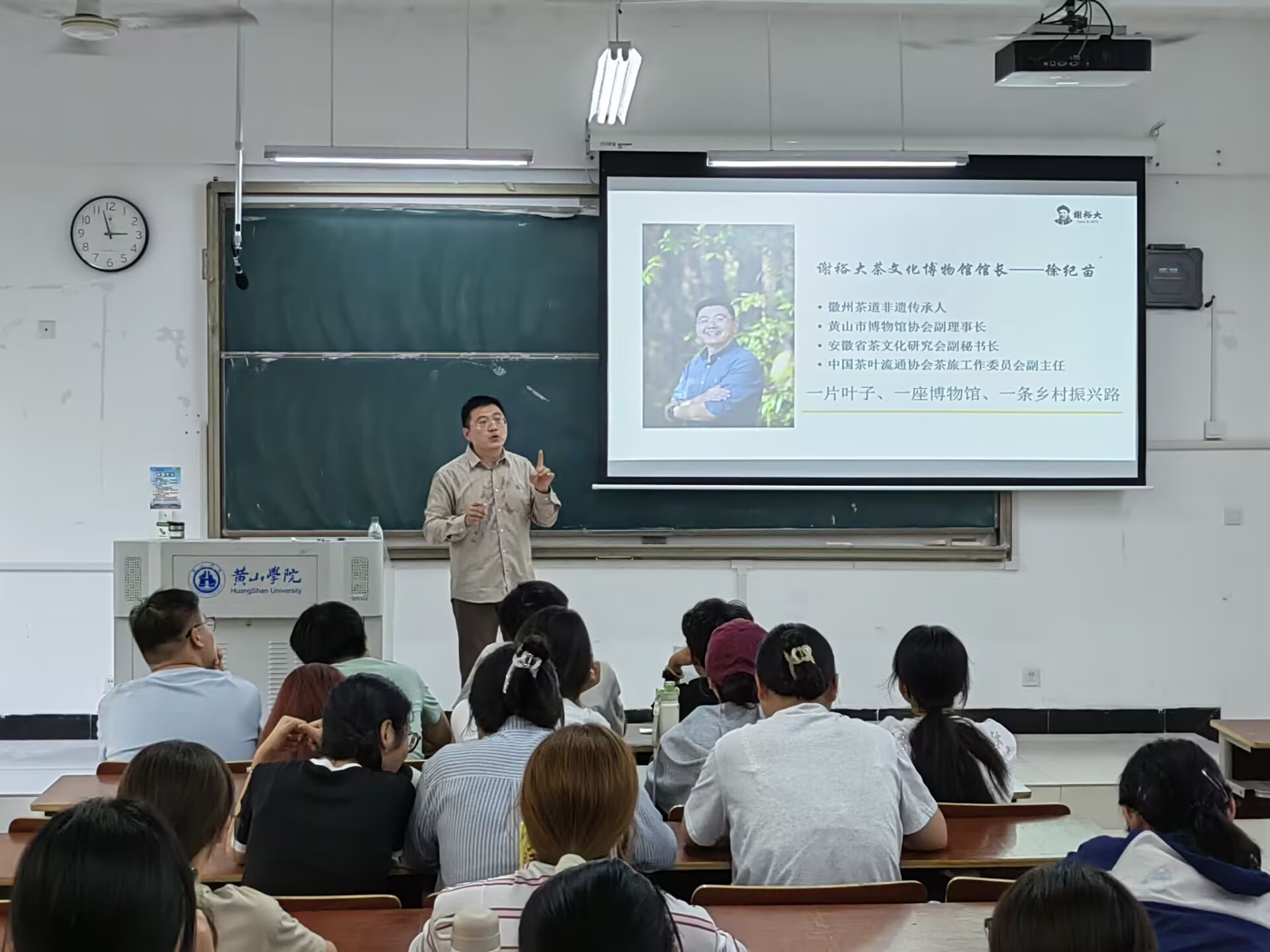 讲座伊始,馆长徐纪苗以“一片叶子、一座博物馆、一条乡村振兴路”为引,结合其17年博物馆工作经验,生动阐述了茶与徽州地域文化、乡村发展的紧密联系。他系统梳理了中国茶叶的主要产区分布,让同学们对茶叶知识有了全面认知。随后,徐纪苗积极与学生互动,借此引导同学们深入理解茶文化并非静止的传统,而是在创新中发展演变,早已融入现代生活。