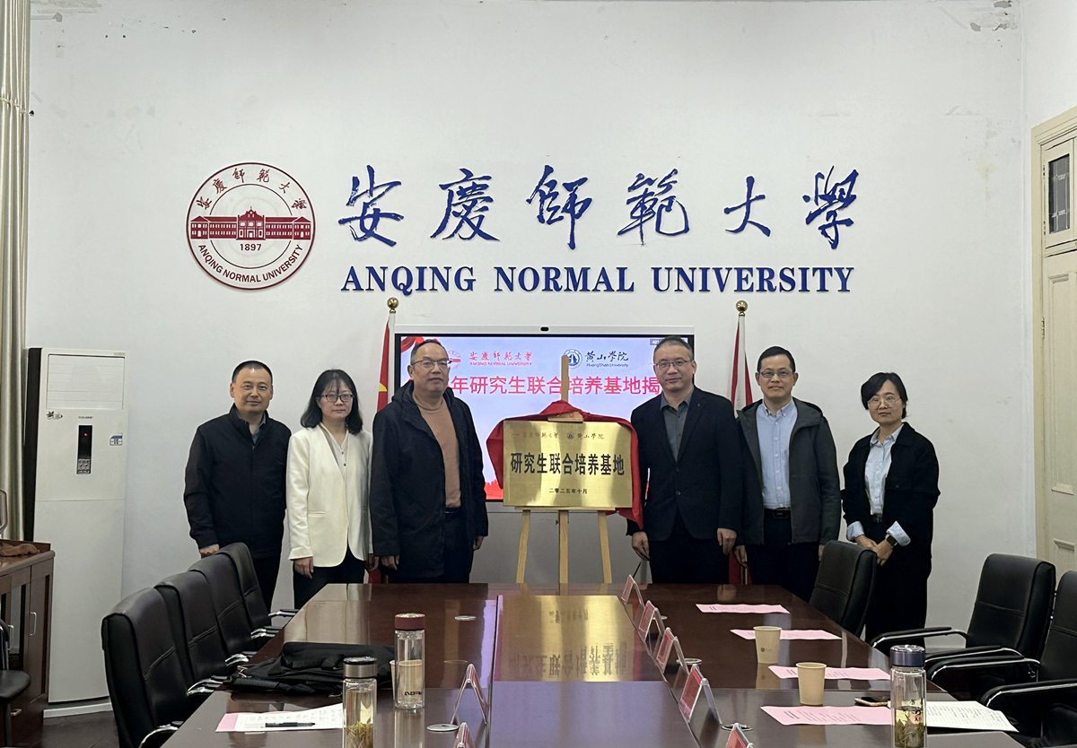 10月29日上午,文学院院长沈昌明率队赴安庆师范大学人文学院开展调研工作,并出席黄山学院文学院与安庆师范大学人文学院“研究生联合培养基地”揭牌仪式。人文学院院长汪孔丰,副院长沈志富、张莹,以及该院国际中文教育专硕点教师代表、学生代表等参加相关活动。安庆师范大学人文学院副院长沈志富主持座谈会及揭牌仪式。29日下午,我院随行人员接受该校颁发的兼职硕士研究生导师聘书,并参加专项业务培训。