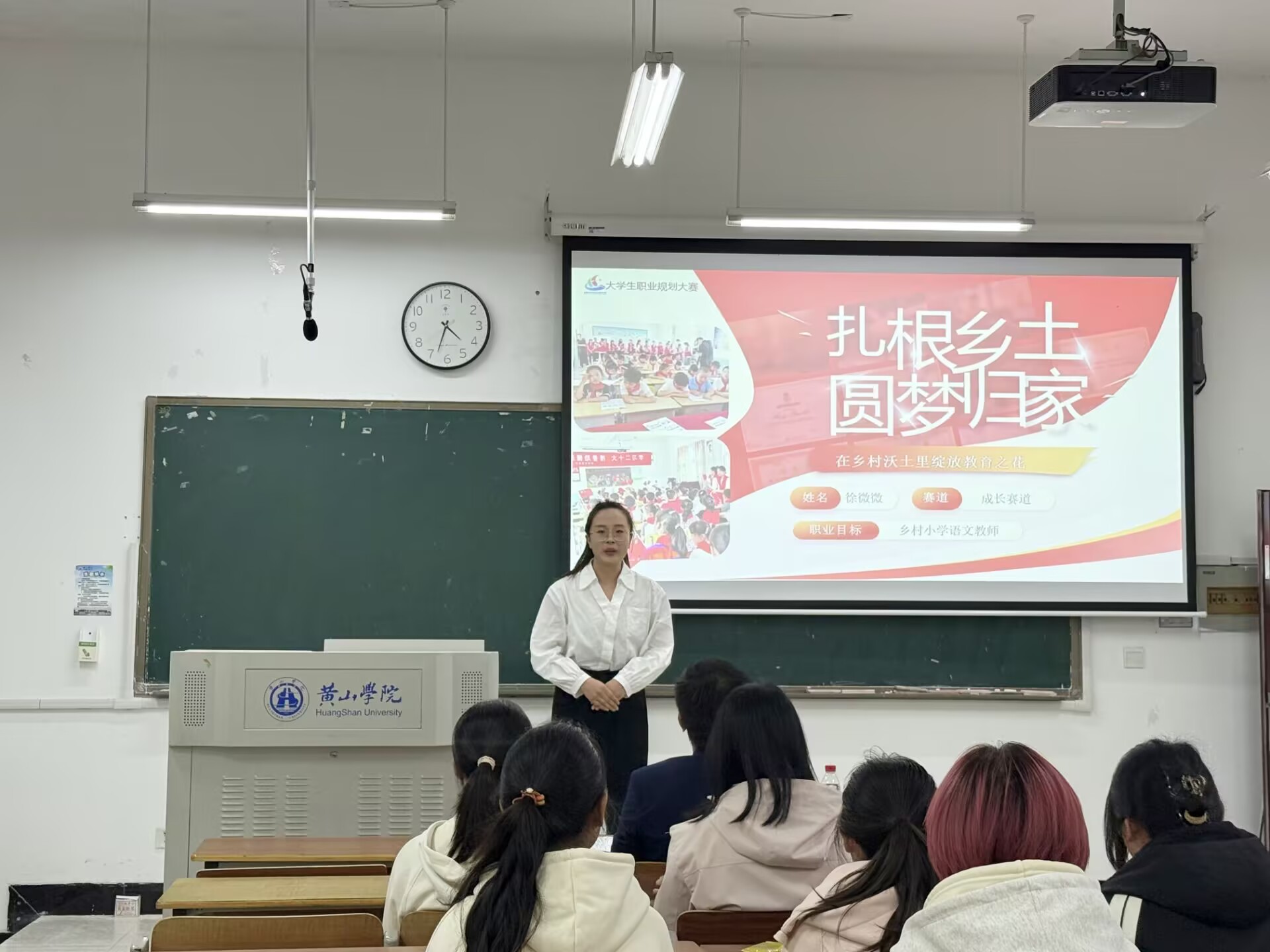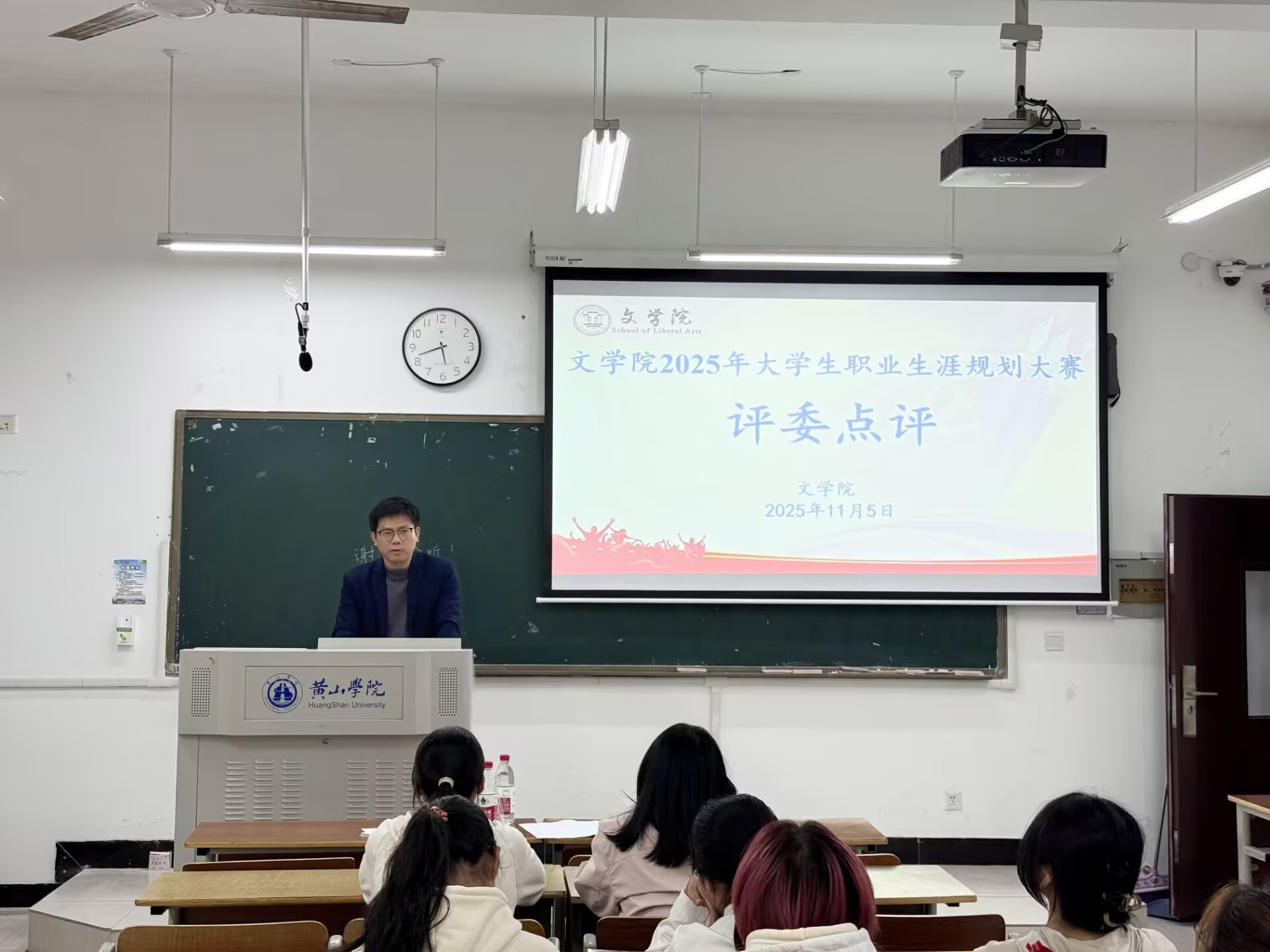 为引导学生开展精准化职业生涯规划,树立正确的就业观,全面推动毕业生高质量就业,11月5日下午,文学院在文端楼2104教室成功举办2025年大学生职业生涯规划大赛。