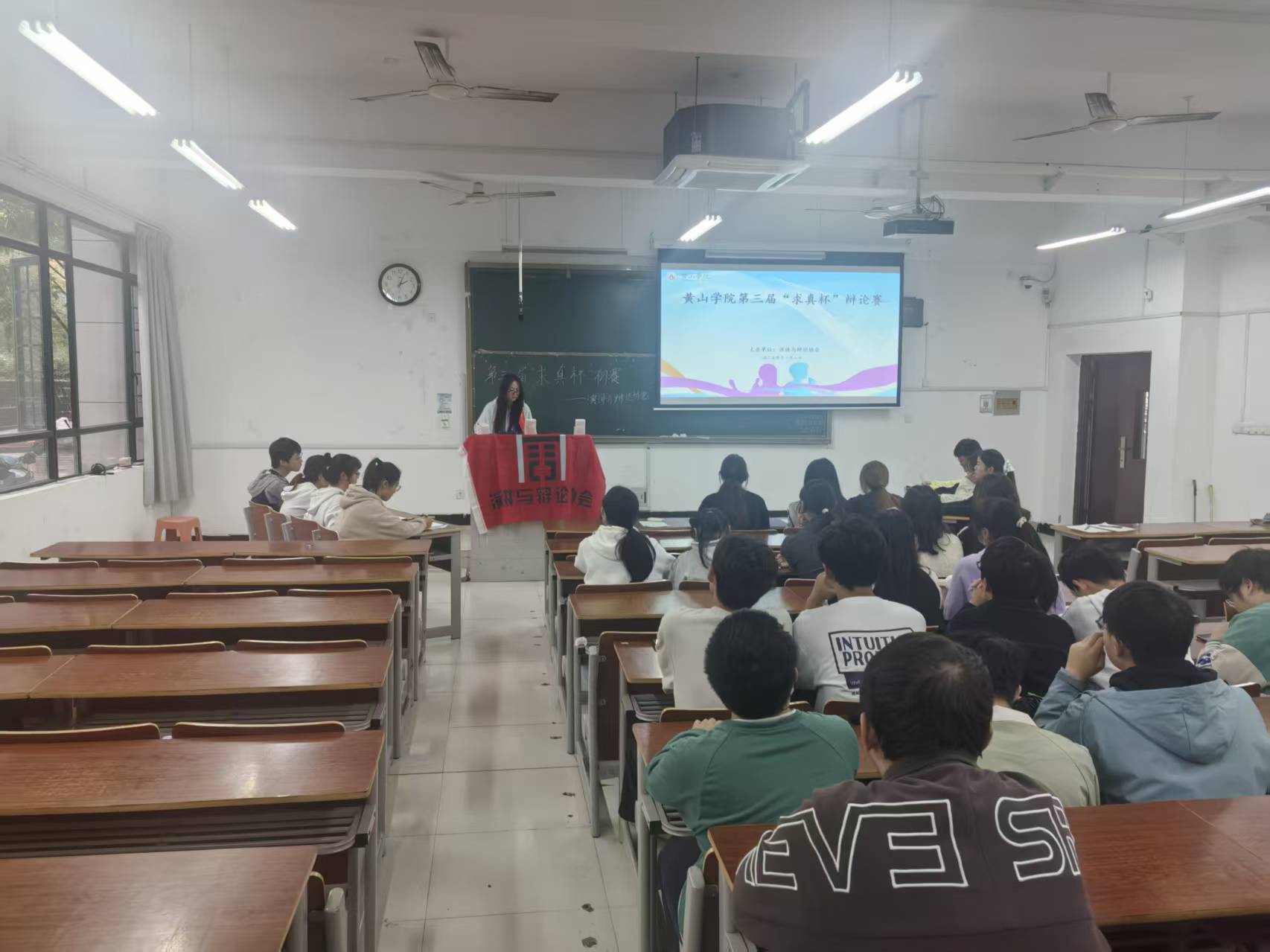 2025年11月8日下午,演讲与辩论协会“求真杯”辩论赛初赛在文端楼2206成功举办。本次活动是黄山学院校园文化艺术节的重点立项项目,是由演讲与辩论协会理事进行组织策划,面向群体主要是全校学生的辩论赛活动。