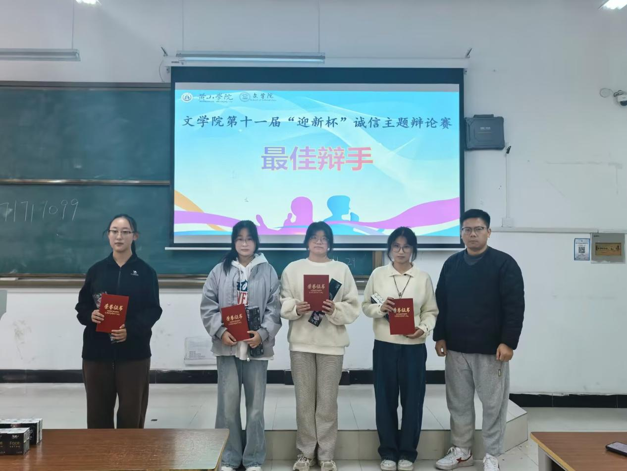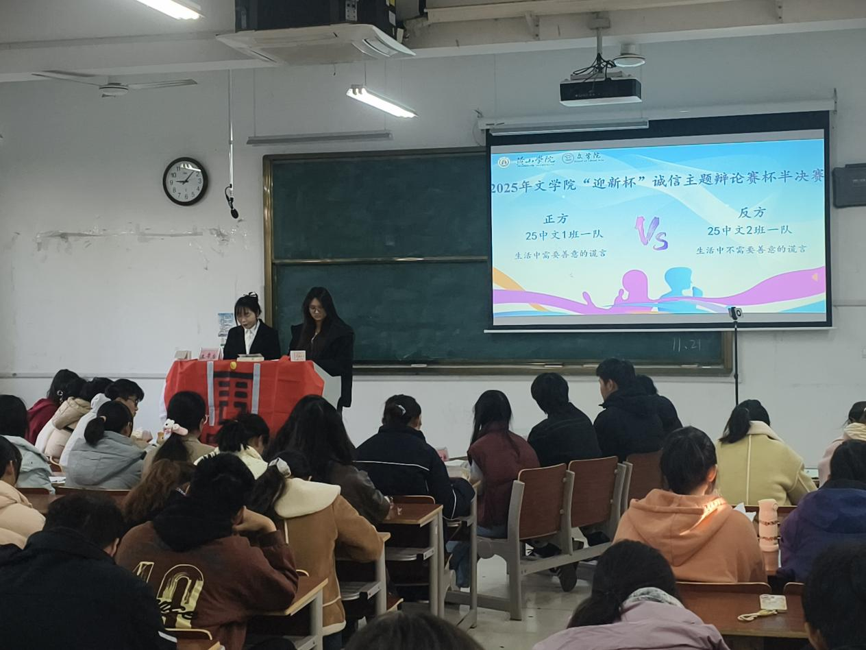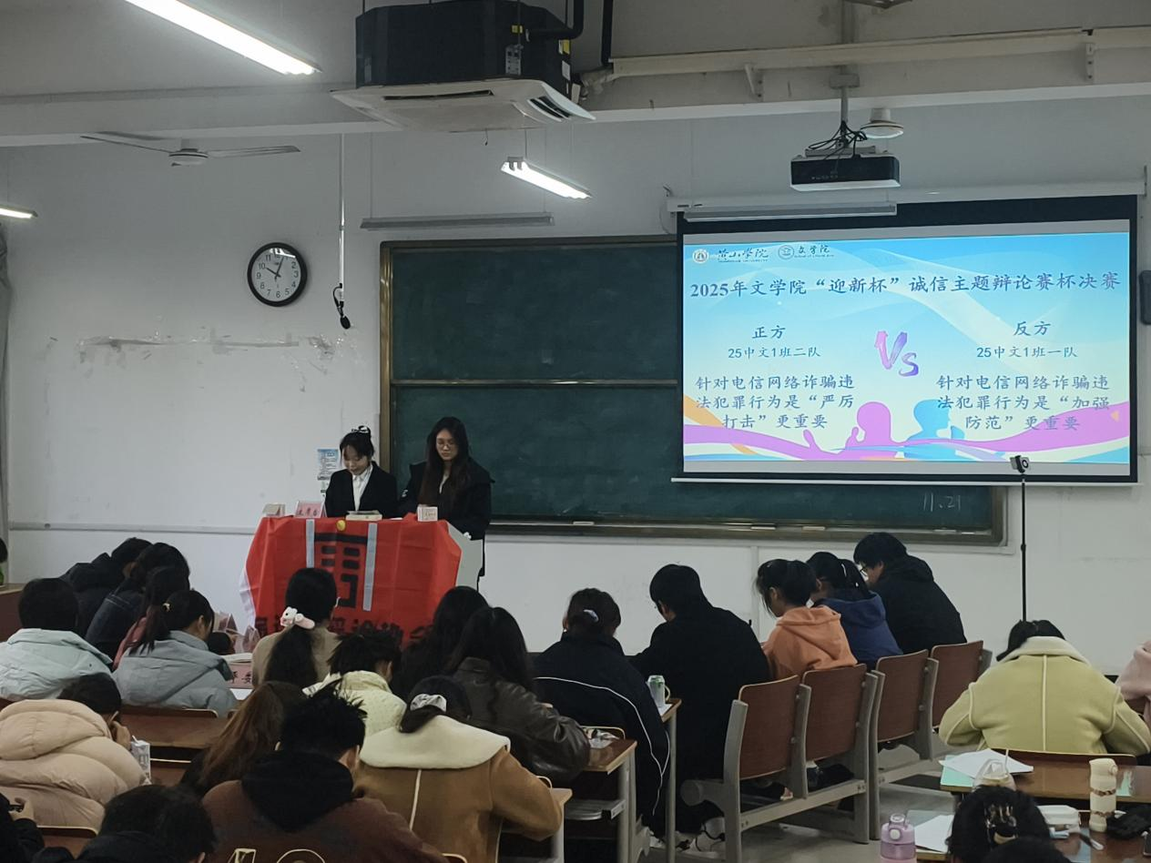 11月30日上午,文学院第十一届“迎新杯”诚信主题辩论赛于文端楼2205教室圆满落幕。