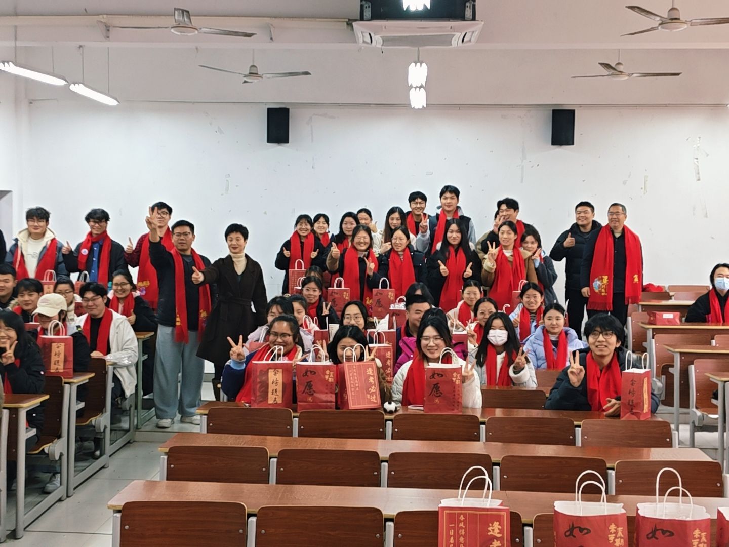 随后,学院领导和辅导员老师共同为考研学子送上精心准备的礼品,寄托着学院对同学们的深切祝福和殷切关怀。