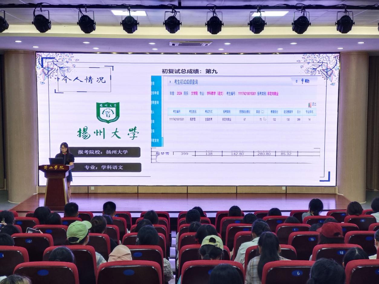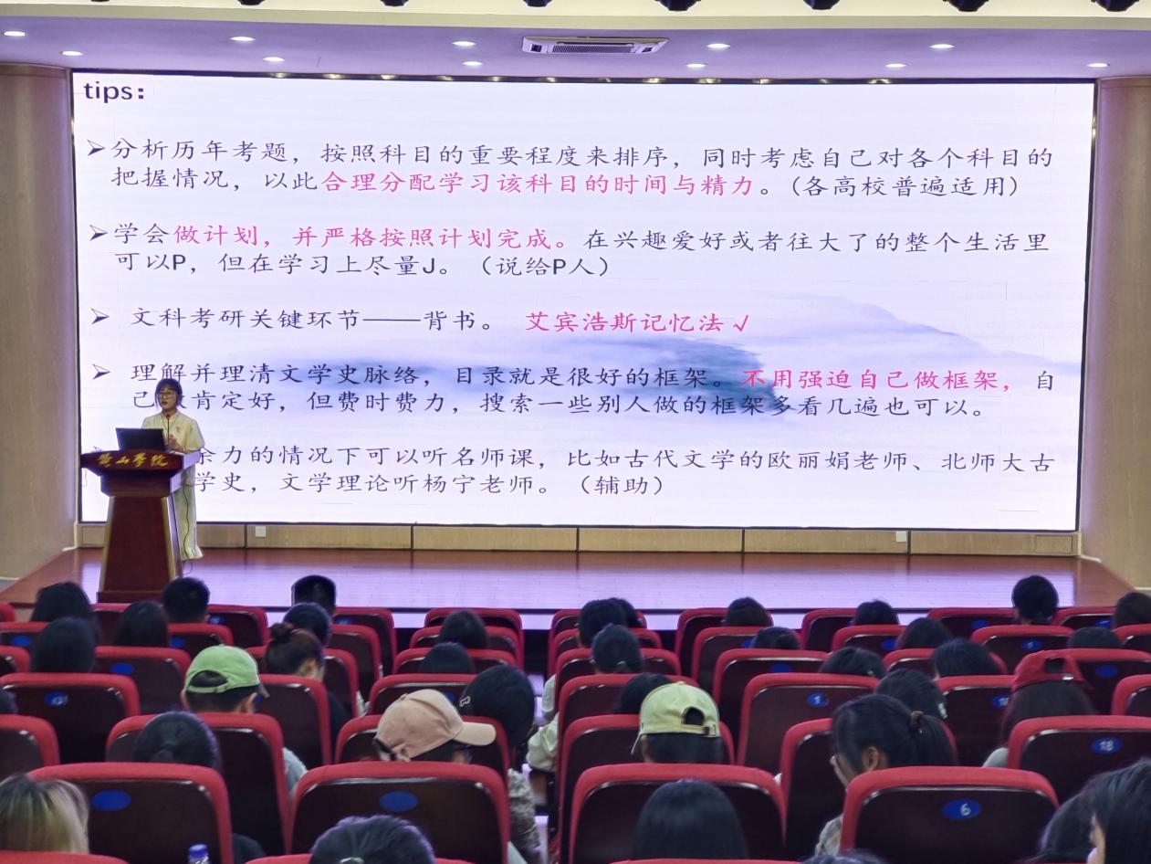分享会上,20中文一班殷梦雪和22中文专升本一班徐云燕分享了备战考研的经验。她们结合自身经历围绕目标选择、备考规划、学习方法、心态调整等方面展开分享,强调时间管理理解记忆提高效率,同时,要注重身体锻炼调整心态坚定信念以积极健康的心态备战。
