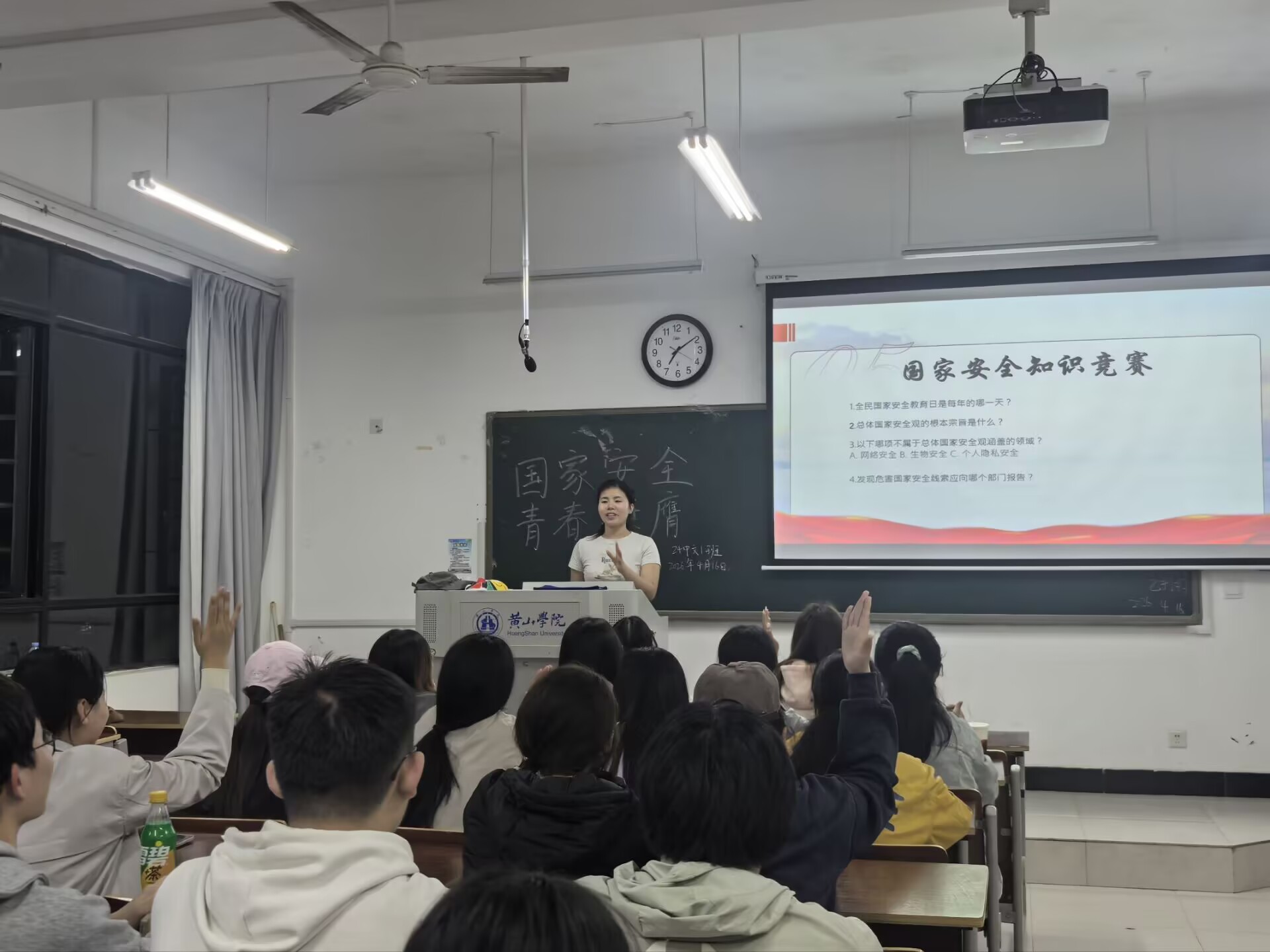 知识竞赛比拼,巩固学习成果。为检验学习成效,部分团支部开展了国家安全知识竞赛。竞赛内容涵盖法律法规、安全常识等,同学们积极抢答、踊跃参与,在轻松活跃的氛围中巩固了所学知识。