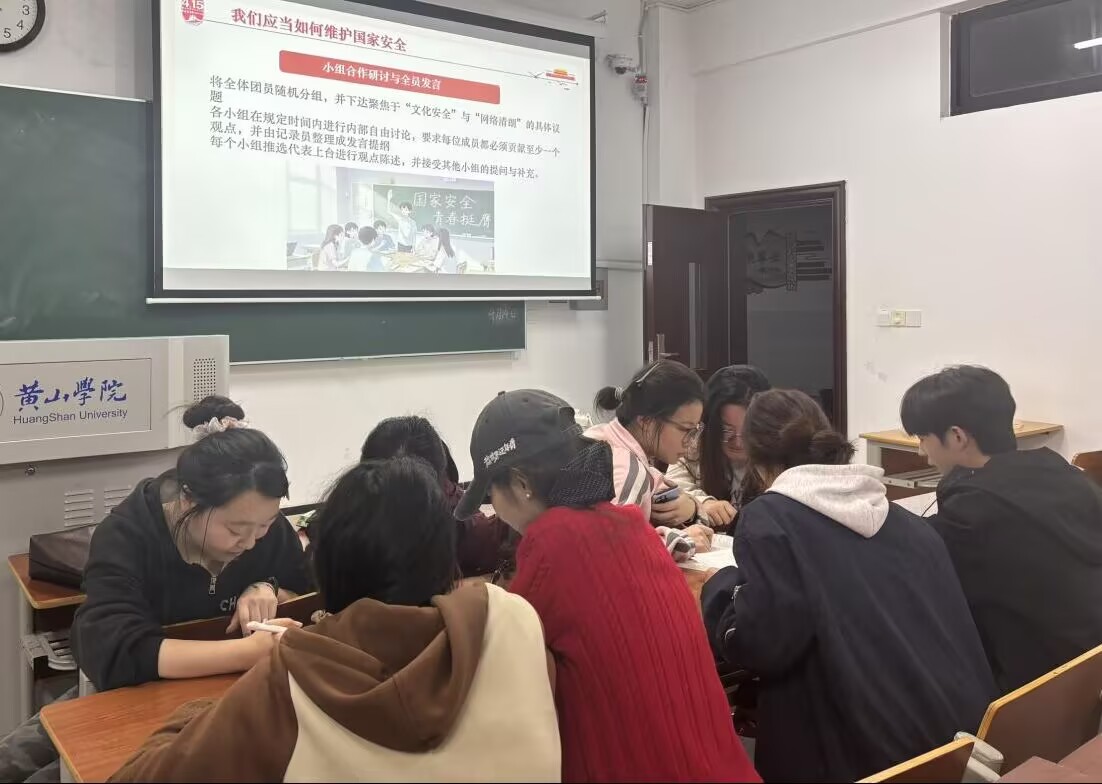 分组讨论交流,深化理解认识。在集中学习基础上,各团支部组织团员分组开展讨论交流。同学们结合专业学习与日常生活,围绕“青年如何在维护国家安全中发挥作用”等话题畅谈体会,在思想碰撞中进一步深化对国家安全的理解。