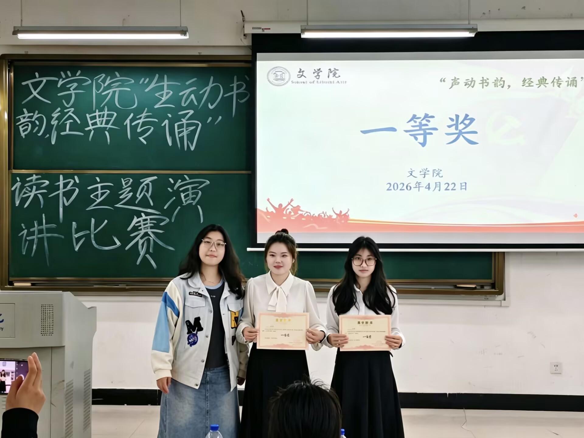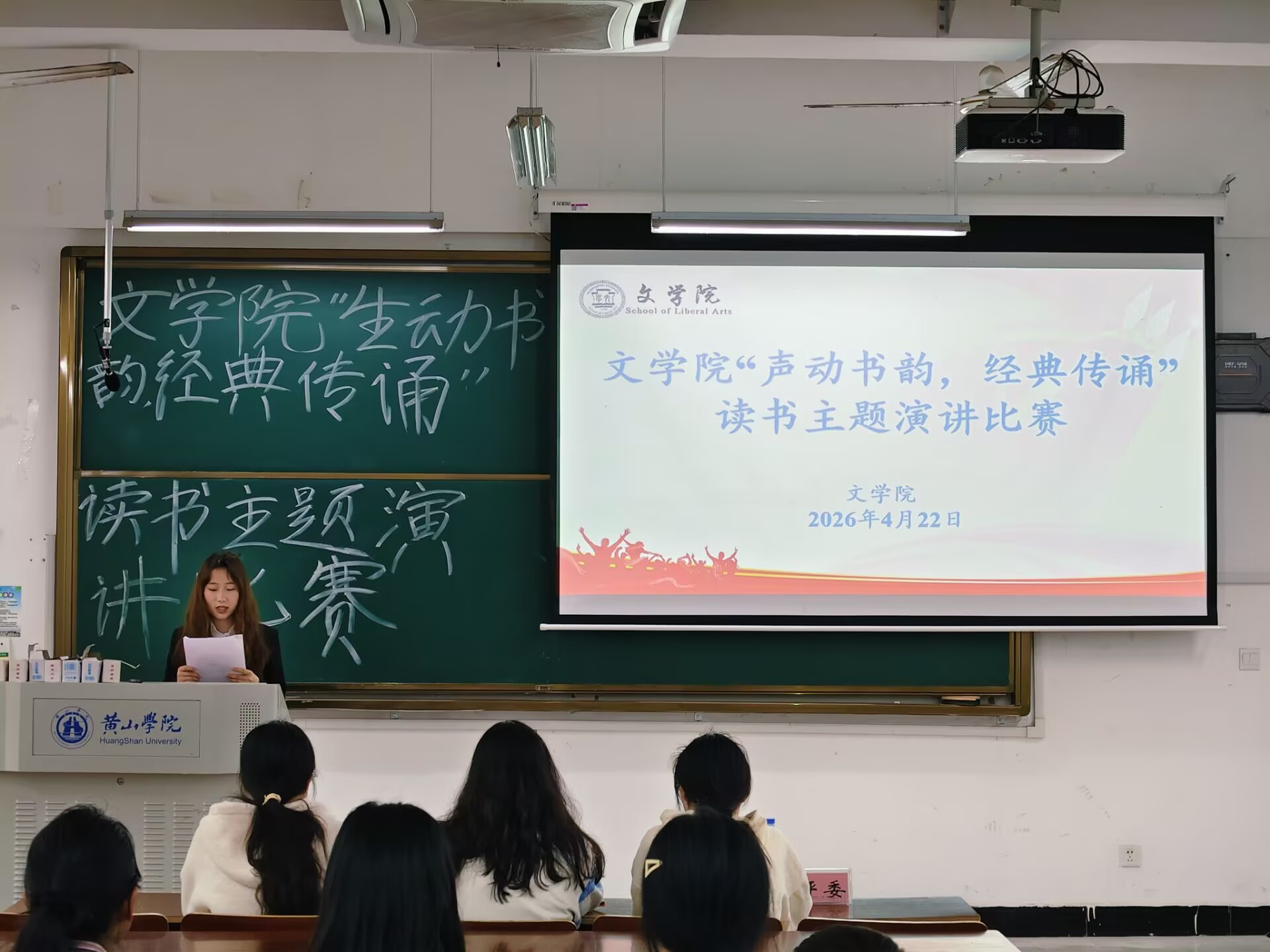 4月22日下午,文学院于文端楼2205教室举办“声动书韵,经典传诵”读书主题演讲比赛,21名选手同台竞技,演绎读书魅力。