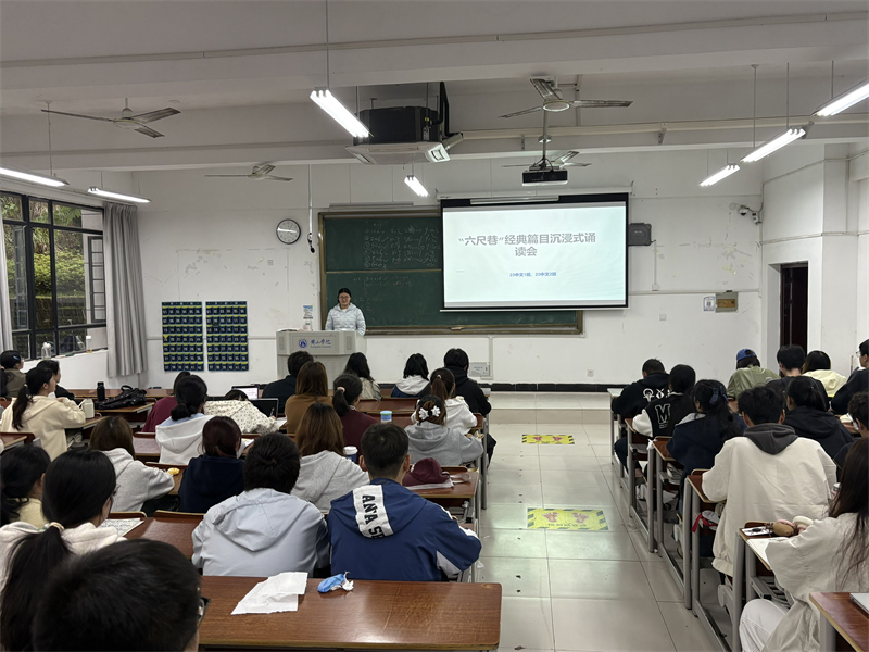 为赓续中华文脉、创新文化育人形式,引导学生在沉浸式体验中感悟“礼让、和谐”的传统美德,23中文1、2班于4月9日在文端楼2208举办“六尺巷”经典篇目沉浸式诵读会。不同于传统的朗诵比赛,本次活动以场景还原、角色代入、音画融合等方式,让师生“走进”六尺巷的故事之中,在诵读中与先贤对话、与经典共鸣。