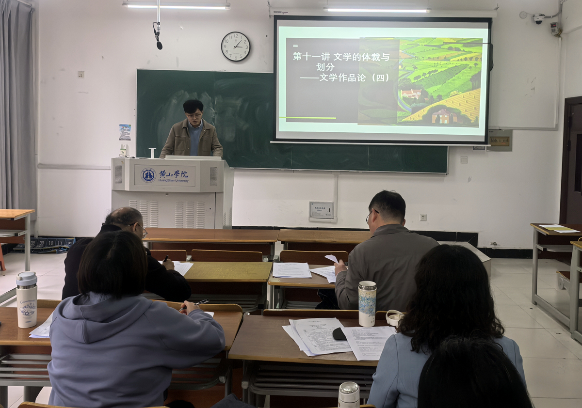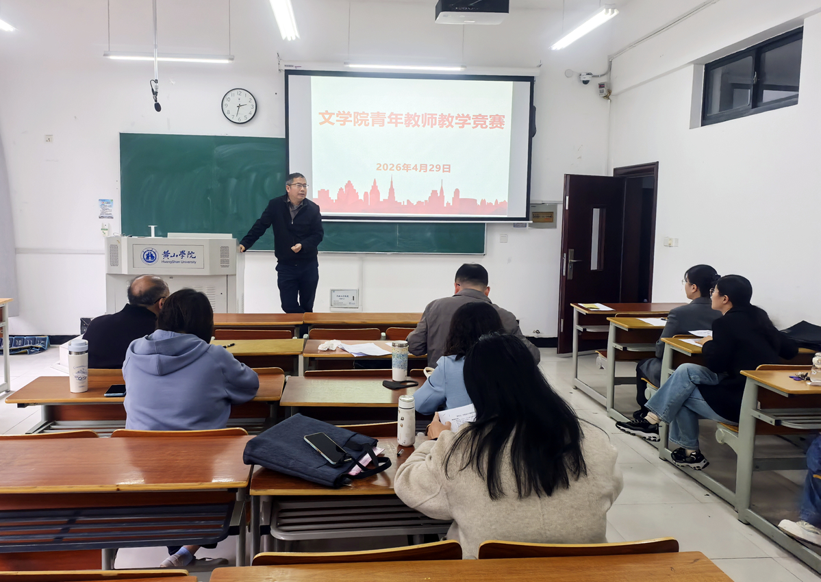 为持续锤炼青年教师教学基本功,全面提升人才培养质量与育人实效,搭建青年教师交流教学经验、展示专业风采的成长平台;按照黄山学院第十六届青年教师教学基本功竞赛及安徽省第八届高校青年教师教学竞赛选拔赛要求,4月29日下午文学院在文端楼2104教室举行黄山学院第十六届青年教师教学基本功竞赛及安徽省第八届高校青年教师教学竞赛初赛。院党总支书记汪方学、副院长朱宏胜、学院教职工参加现场观摩。选拔赛由副院长朱宏胜主持。